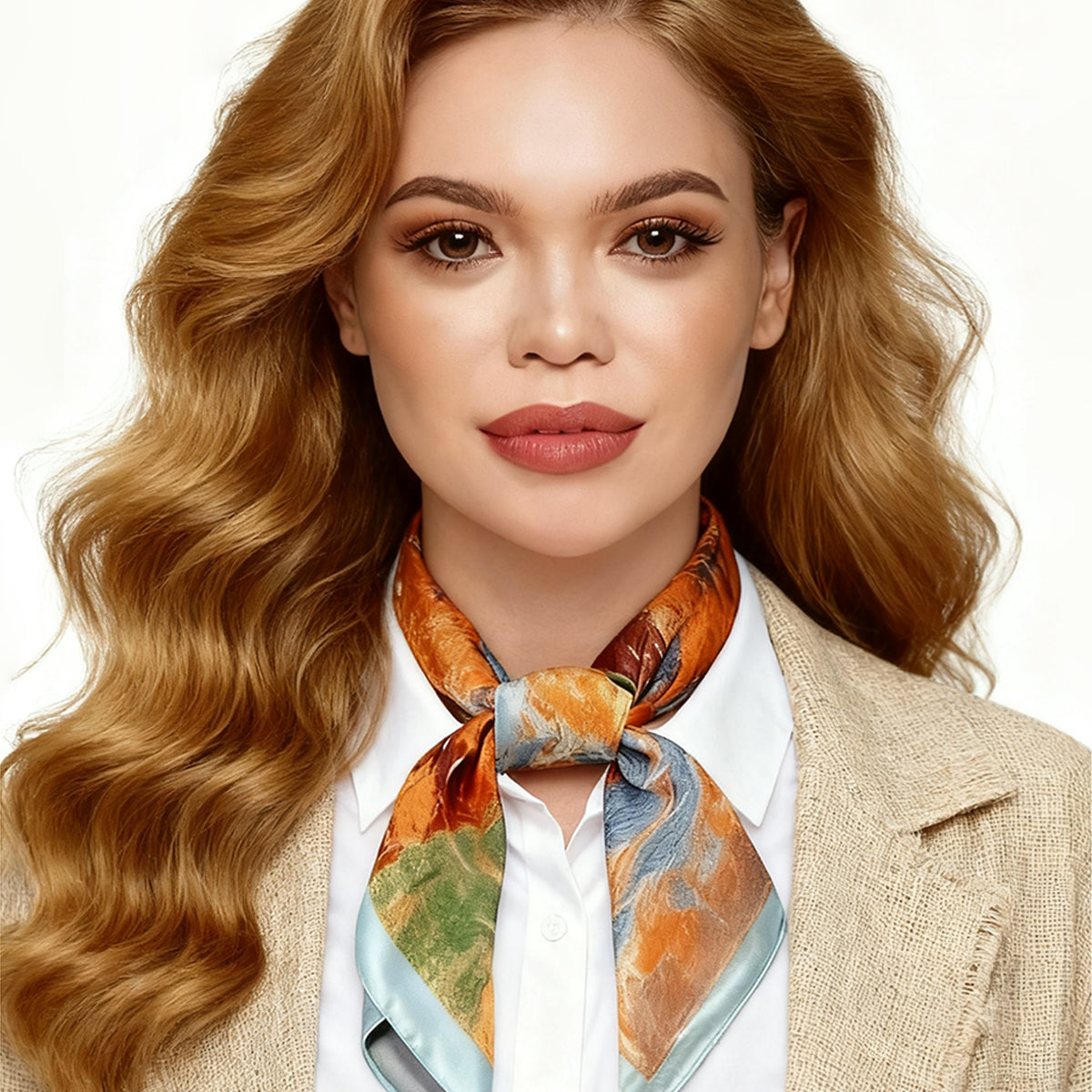 70*70 silk scarf autumn tree oil painting style square silk scarf for woman