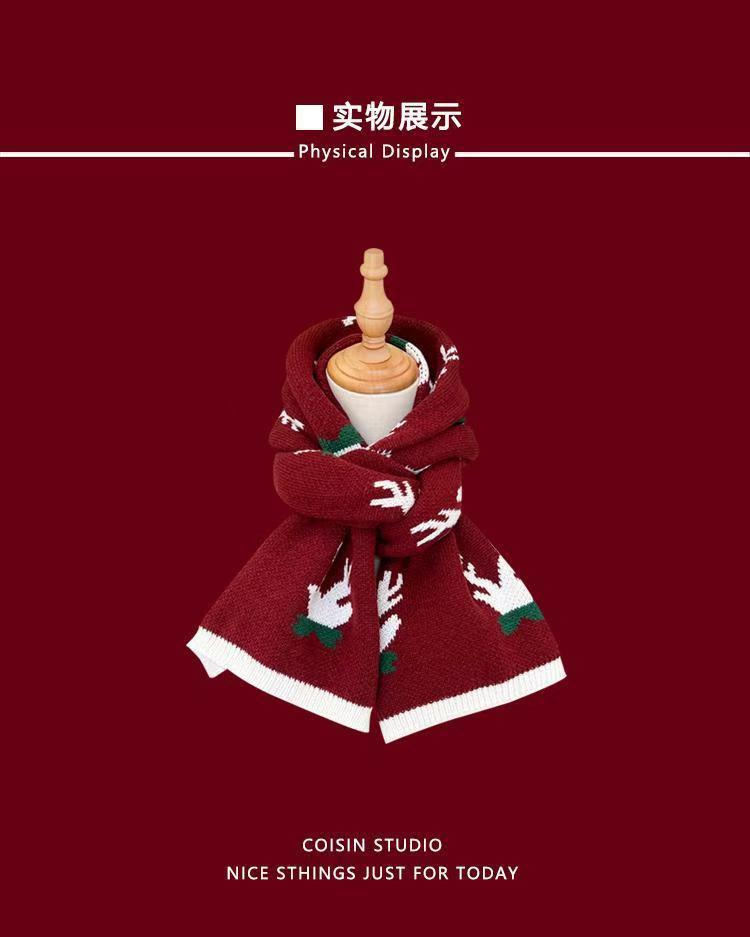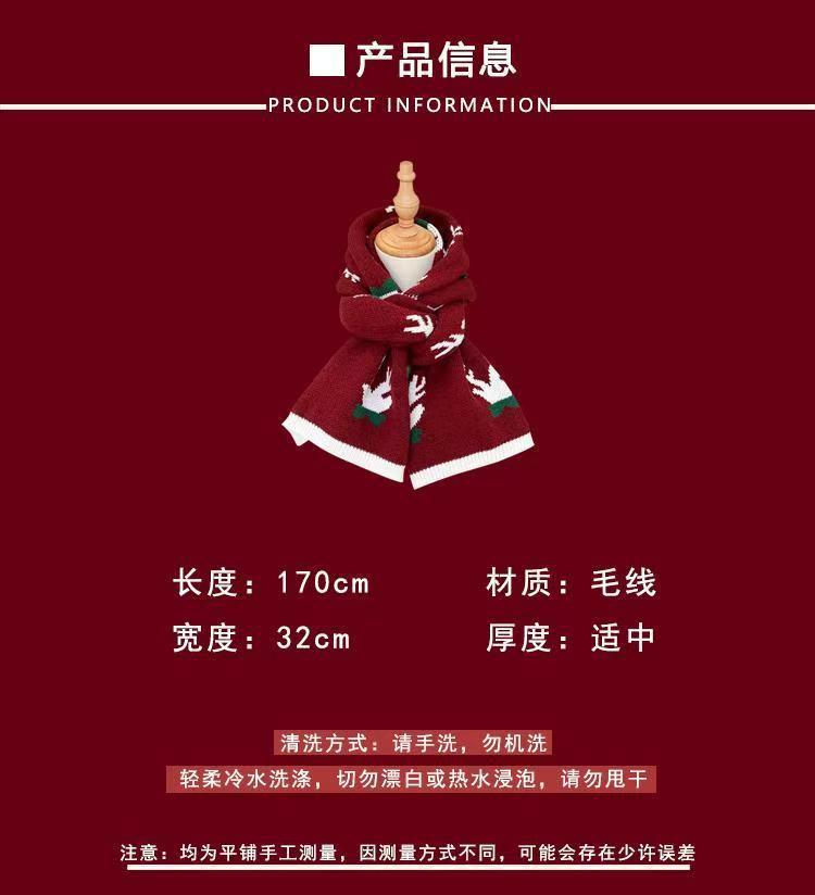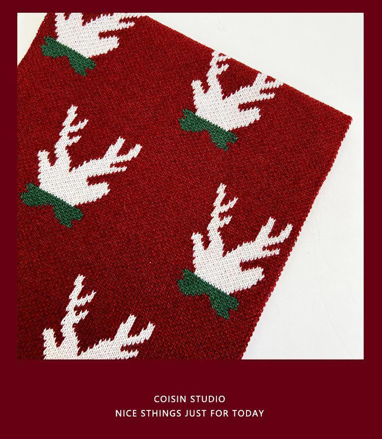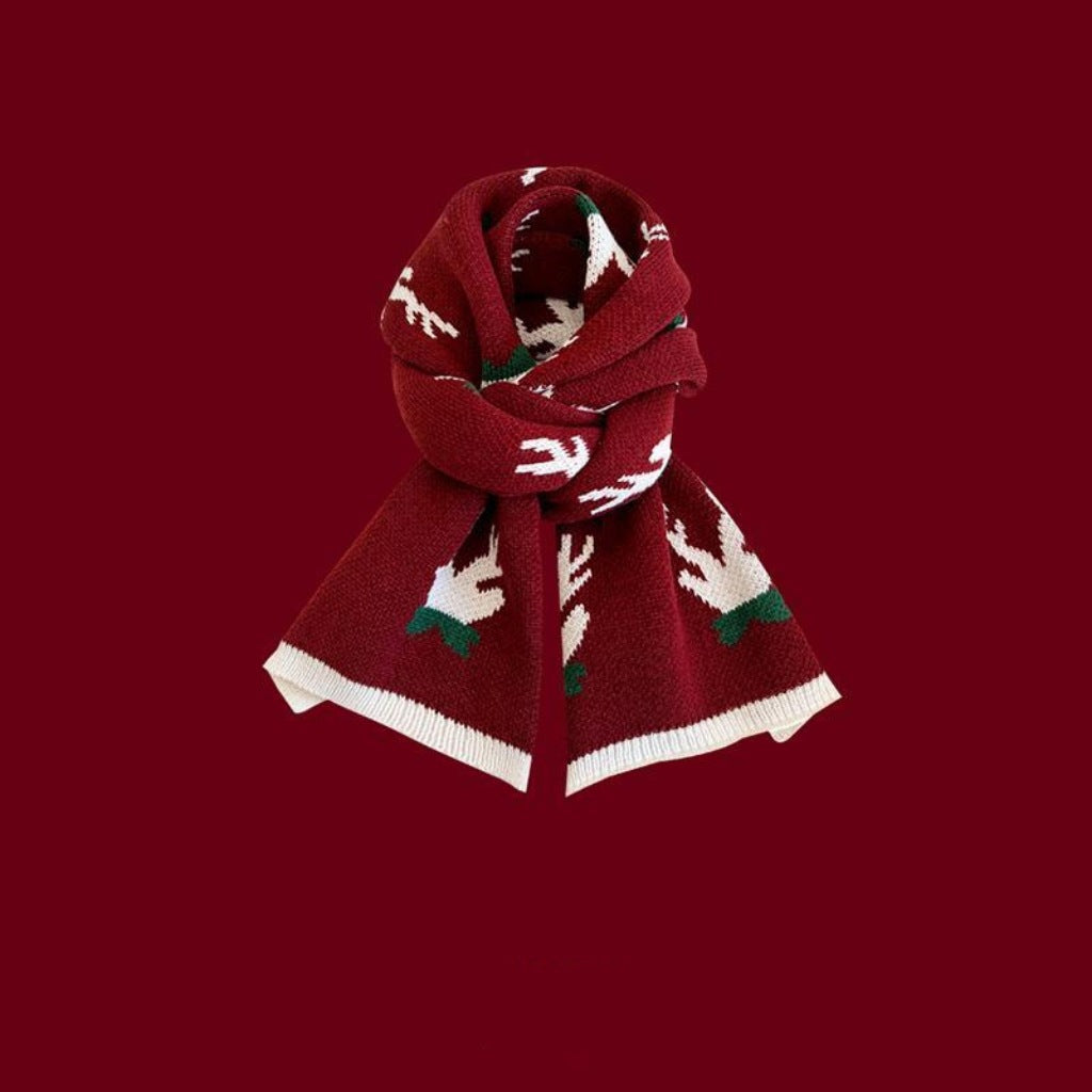 New Christmas Scarf for Women, Versatile, Brightening, Imitation Cashmere Reindeer Scarf, New Year Red Scarf